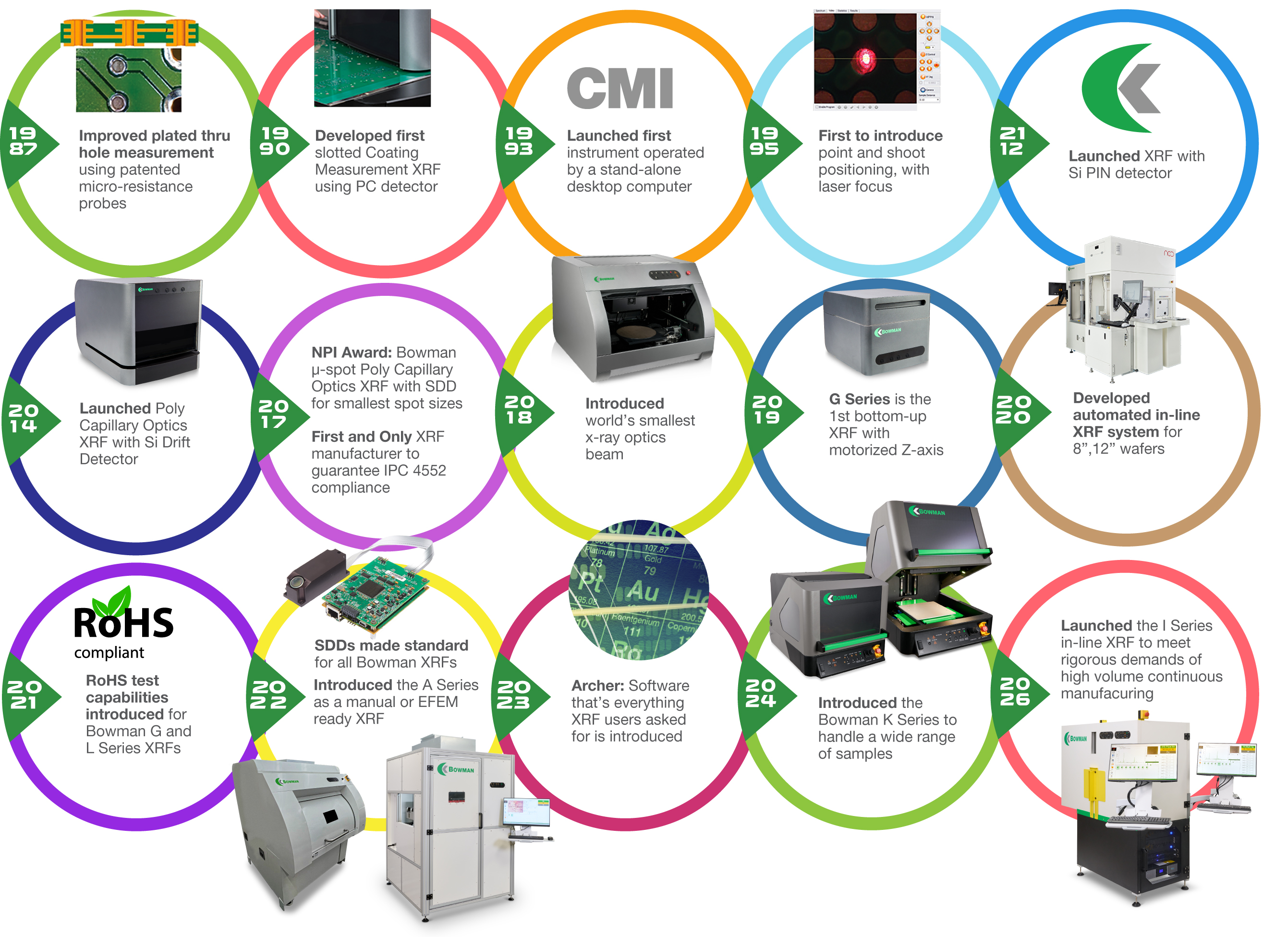 Bowman was founded by the technical team that established CMI International and successfully grew the company to become a respected leader in the XRF plating measurement industry. The Bowman team offers customers the advantage of more than five decades of combined experience in the coating thickness measurement and elemental analysis industry.